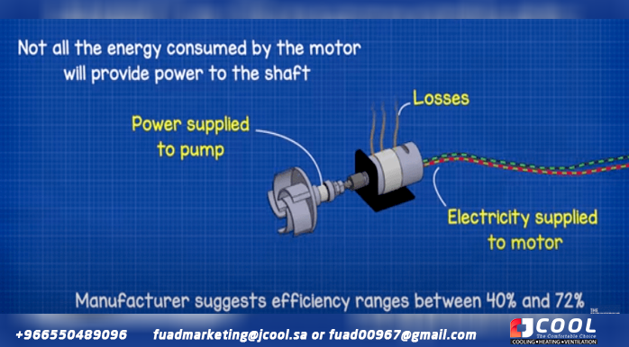 To assess the efficiency of the pump, we try to take into account the losses of the electric motor. From the manufacturer's data it shows that the minimum efficiency is around 40% and the maximum is around 72%, but both figures are calculated under no-load conditions and our motor is obviously under load. But we will only use these numbers to get a rough estimate.